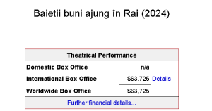 Sălile sunt pline la acest film, ceea ce-i foarte bine că filmul românesc este susținut, dar ar fi și mai frumos dacă filmul românesc ar fi susținut și când pe afiș se află un Radu Jude, Tudor Giurgiu, o distribuție de actori mai necunoscuți sau în general, la filme serioase, nu cu influenceri și tik tokeri pe afiș.
